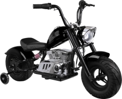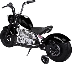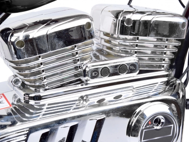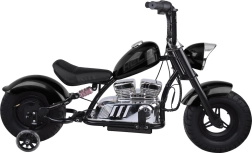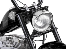 De elektrische chopper voor kinderen combineert een authentieke look met moderne uitrusting voor veilig en plezierig rijden. De gashendel met regeling zorgt voor een vloeiende start en helpt het tempo aan te passen aan de vaardigheden van het kind, terwijl de achterste schijfrem voor zeker stoppen zorgt. LED-lichten en realistische motorgeluiden versterken de rijbeleving.