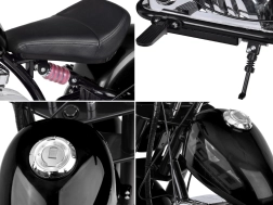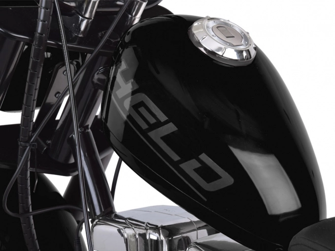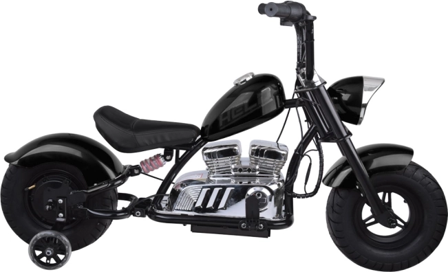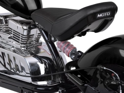 Stijlvolle kinderchopper geïnspireerd op klassieke motorfietsen met een krachtige 24V-motor, 24V 14Ah accu, snelheid tot 20 km/u en een stalen constructie voor stabiel en veilig rijden. Extra comfort dankzij opblaasbare wielen, achtervering, een zadel van eco-leer en handmatige snelheidsregeling in de gashendel. Inclusief achterste schijfrem, LED-verlichting, geluidseffecten en een USB-ingang voor favoriete muziek.