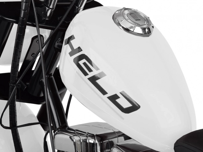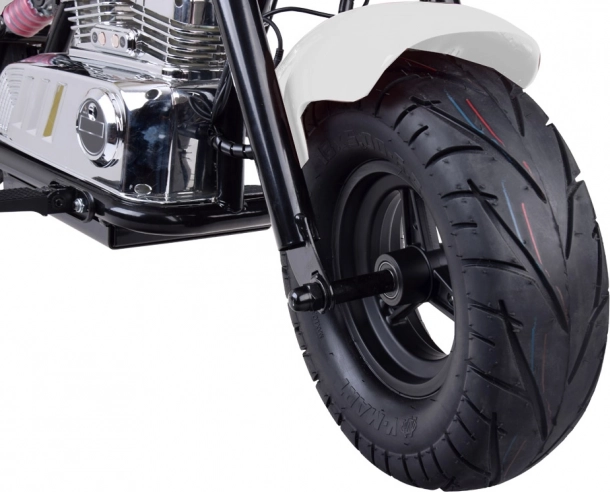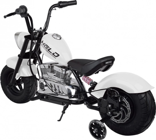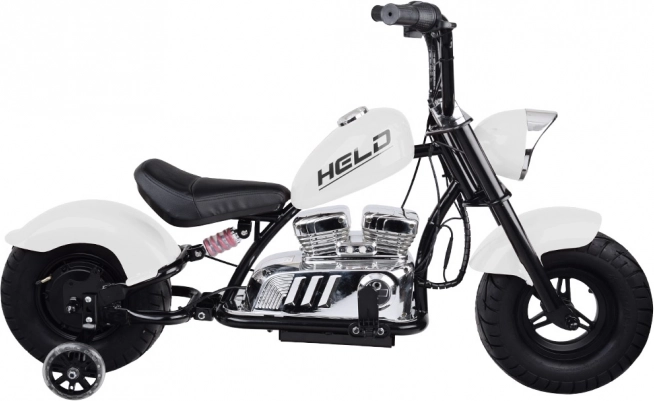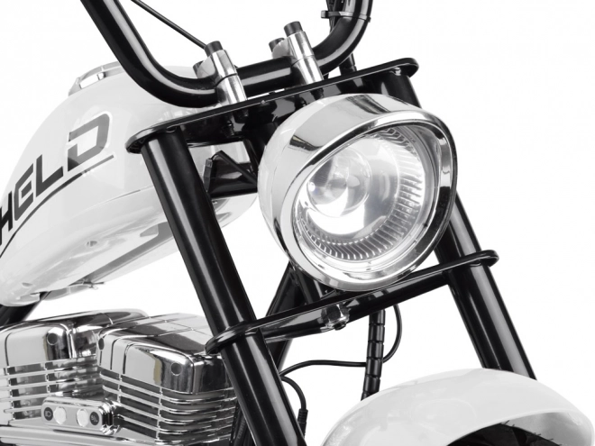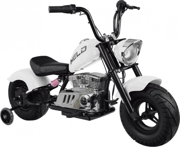 Elektrische kindermotor geïnspireerd op klassieke choppers voor een realistische rijervaring dankzij de traploos regelbare snelheid via de gashendel, levensechte startgeluiden en LED-licht. Het versterkte stalen frame en de achterste schijfrem verhogen de veiligheid, ook bij hogere snelheden. Geschikt voor asfalt, tegels en andere harde ondergronden.