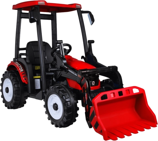 Deze robuuste elektrische tractor is gemaakt van duurzaam kunststof en lijkt sterk op een echte machine. Grote wielen kunnen asfalt, klinkers en gras aan; dankzij de vloeiende bediening met het gaspedaal en de automatische rem bij het loslaten van het pedaal is het rijden intuïtief. Voor extra plezier zorgen voorste LED-lampen, een claxon op het stuur en een multimediapaneel met Bluetooth, USB en MP3-ingang (incl. Engelse verhaaltjes en liedjes).