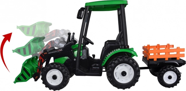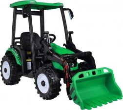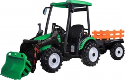 Robuuste elektrische kindertractor met aanhanger en een beweegbare voorlaadbak voor realistisch speelplezier in tuin en erf. Dankzij de 24 V-aandrijving en 2 krachtige motoren rijdt hij op asfalt, bestrating en gras. Met licht- en geluidseffecten, een veiligheidsriem, 2,4 GHz ouderlijke afstandsbediening en een multimediapaneel met Bluetooth, USB en MP3.