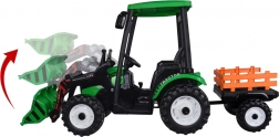 De elektrische tractor voor kleine boeren is gemaakt van duurzaam kunststof, heeft grote wielen voor uiteenlopende ondergronden en een cabine met overkapping voor comfortabel instappen. Het kind kan zelfstandig rijden of onder ouderlijk toezicht met de afstandsbediening. De beweegbare voorlaadbak en afneembare aanhanger vergroten de speelmogelijkheden – van het vervoeren van gras en speelgoed tot kleine ladingen.