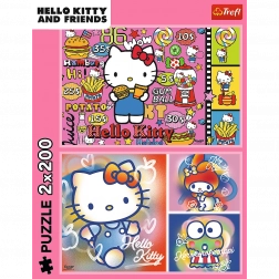 Puzzel 2x200 Hello Kitty en vrienden biedt twee afbeeldingen in één set, elk met 200 stukjes, die urenlang plezier bieden voor zowel kinderen als volwassenen. Deze puzzelset stelt kleurrijke collages voor geïnspireerd door de geliefde tekenfilm Hello Kitty, die na voltooiing een afmeting van 410x275 mm bereiken.
