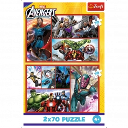 De puzzels Word een held van Trefl brengen superhelden uit het team Marvel Avengers naar je huis. Deze set bevat twee puzzels die, eenmaal gelegd, een afbeelding vormen van 275x180 mm.