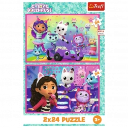 Puzzel 2x24 Spelletjes met Gabby is ideaal voor alle kinderen die van puzzelen houden. Bevat twee afbeeldingen uit de populaire serie Gabby’s Poppenhuis, elk met een formaat van 275 x 180 mm.
