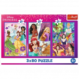 Puzzel 3x80 Disney Prinsessen Vrienden bevat drie verschillende puzzels met thema's van Disney prinsessen. Deze verpakking biedt plezier voor meerdere kinderen, omdat het drie puzzels met 80 stukjes biedt.