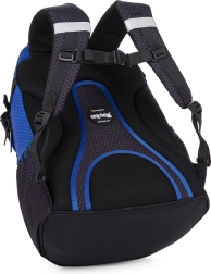 De doordachte indeling met twee ruime compartimenten biedt plaats aan alle schoolbenodigdheden. Elastische zijvakken zijn ideaal voor een drinkfles en het voorvakje bergt veilig een kleine snack of kleinigheden op. De stevige bodem zorgt voor stabiliteit wanneer de rugzak rechtop staat en reflecterende elementen verhogen de zichtbaarheid van het kind in schemering en duisternis.