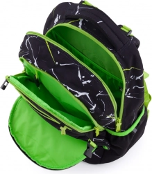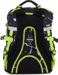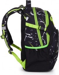 Lichte en duurzame schoolrugzak Oxy Ombre Electric voor kinderen vanaf groep 5/6 combineert anatomisch gevormde rug, gepolsterde schouderbanden en een borstriem voor comfortabel dragen. Biedt twee ruime vakken, zijvakken voor een fles, een praktische voorvakje voor een snack en reflecterende elementen voor extra veiligheid. De stevige bodem zorgt voor stabiliteit bij het neerzetten.