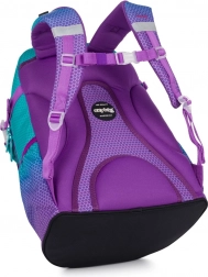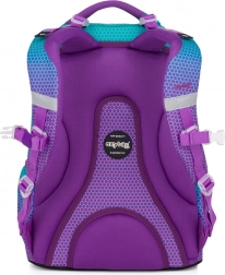 De Oxy Ombre Blue Pink schoolrugzak valt op door het moderne ombre-design in turquoise en paars met een hexagonaal patroon. Dankzij het anatomisch gevormde rugpanel en de gepolsterde, verstelbare banden biedt hij de hele dag comfort, zelfs bij volledige belading. De stevige bodem zorgt voor stabiele plaatsing en beschermt de inhoud.