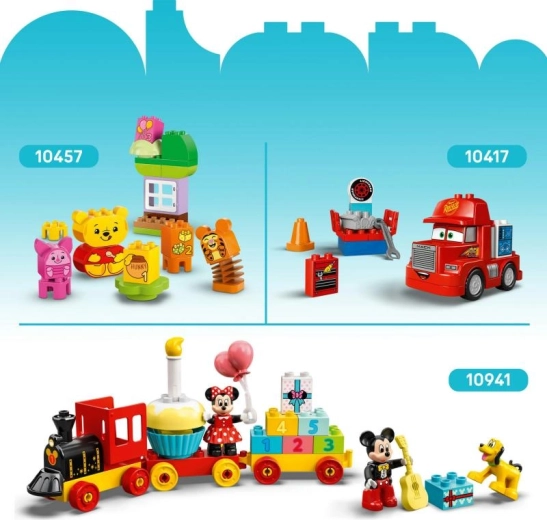 De set bevat een LEGO DUPLO figuur van Mickey Mouse en zijn slimme helper Cosík, de iconische rode auto en kleurrijke stenen voor eenvoudig en veilig bouwen. Een digitale versie van de instructies is beschikbaar in de LEGO Builder-app. De set is getest op veilige speelbaarheid en is een geweldig cadeau voor jonge fans van voertuigen en de verhalen van Mickey.
