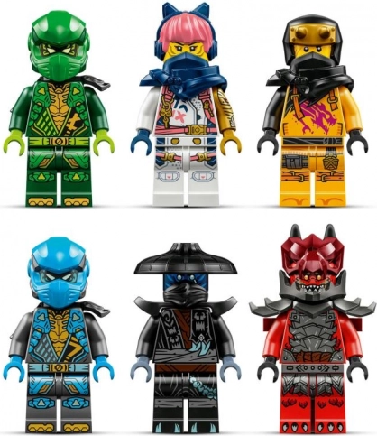 De set bevat 6 minifiguren: de ninjahelden Lloyd, Nya, Arin en Sora met wapens, en de tegenstanders Noktu en Tyr, de leider van de drakenwezens. Kinderen kunnen zo eenvoudig gedetailleerde scènes van goed versus kwaad naspelen en hun NINJAGO-wereld uitbreiden met meer draken, tempels en voertuigen (apart verkrijgbaar).