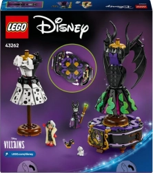 Deze stijlvolle set voor oudere kinderen en volwassen fans bevat twee indrukwekkende jurkmodellen geïnspireerd op beroemde Disney-schurken. In de doos vind je twee losse kledinghangers, een displaystandaard met opbergruimte voor minipoppetjes, dieren en accessoires, plus elementen om drie verschillende patronen op het decoratieve paneel te creëren. Het model is ideaal voor zowel rollenspel als design-display.