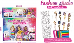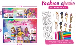 Ontdek je creativiteit met het ontwerpersportfolio, dat 8 modellen, 2 bladen met kleding sjablonen en 12 gekleurde plakfolies bevat.
