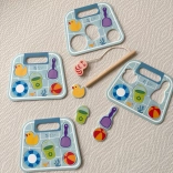 Kleurrijke zeevriendjes en een houten hengel met magneet maken van het vangen van visjes een boeiende activiteit die de fijne motoriek en oog-handcoördinatie versterkt.