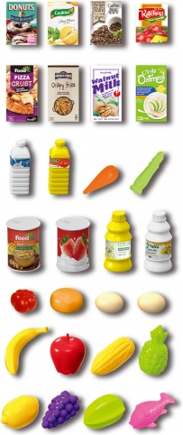 - Complete set: 56 stuks levensmiddelen voor realistisch spel.