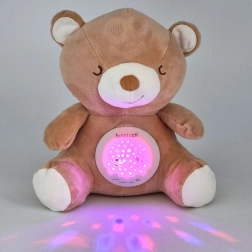 De beer is gemaakt van zacht, pluche materiaal en gevuld met watten voor maximale knuffeligheid. Dankzij het uitneembare mechanisme kun je de knuffel eenvoudig wassen en kan je kind hem ook als klassieke knuffel gebruiken. 3 volumeniveaus laten je het geluid precies afstemmen op de behoeften van je baby.