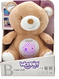 De schattige pluche beer WOOPIE BABY is de ideale slaapmaatje voor baby’s en oudere kinderen. Hij biedt lichteffecten in het buikje, 10 slaapliedjes, rustgevende ruis en hartslag en 3 volumeniveaus. De zachte uitvoering, eenvoudig onderhoud dankzij het uitneembare mechanisme en kinderveilige afwerking maken van dit beertje een onmisbare hulp voor een rustige slaap.