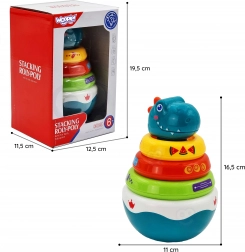 Het stapelen van verschillende vormen en kleuren helpt het kind om fijne motoriek en visuele waarneming te ontwikkelen.