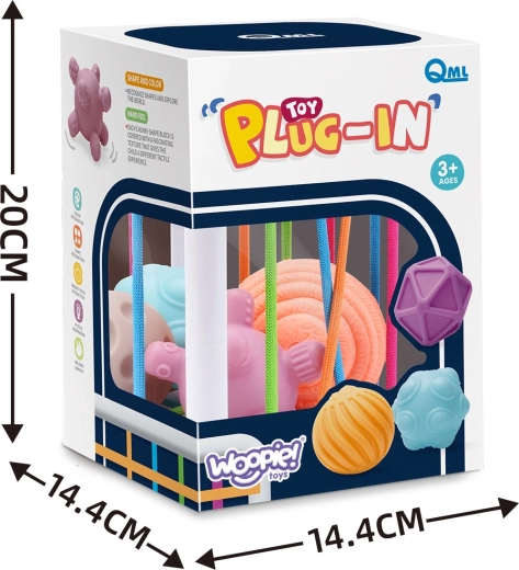 Ontdek een speelse set voor de allerkleinsten: de elastische sensorische kubus van WOOPIE met zachte vormen ontwikkelt de fijne motoriek, de zintuiglijke waarneming en de oog-handcoördinatie. Kinderen kunnen de vormen erin duwen en eruit trekken door de gekleurde elastische bandjes, verschillende texturen verkennen en kleuren en vormen leren. Veilige, zachte materialen en heldere kleuren stimuleren nieuwsgierigheid en zelfstandig spelen.