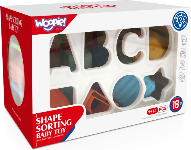 Het in- en uithalen van onderdelen via elastische bandjes en de klassieke sorter leert kinderen een precieze greep, ontwikkelt de oog-handcoördinatie en stimuleert de nieuwsgierigheid bij het ontdekken van nieuwe vormen en texturen.