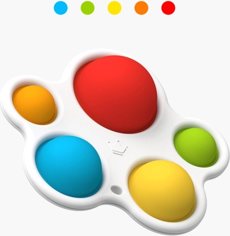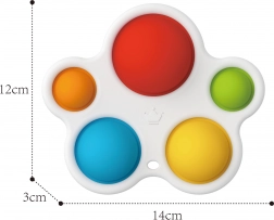 De siliconen bubbels komen in verschillende kleuren en zijn bedoeld om in te drukken, wat helpt bij het ontwikkelen van fijne motoriek en zintuiglijke vaardigheden.