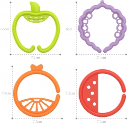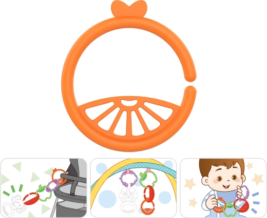 Gemaakt van zachte, lichte en duurzame kunststof die vriendelijk is voor het tandvlees van baby’s. De bijtringen hebben een getextureerd oppervlak voor effectieve massage en zijn geschikt voor kleine kinderhandjes voor makkelijk vastgrijpen. Te gebruiken als bijtring, verbindingsringen en hangclip – een veelzijdige helper voor thuis en onderweg.