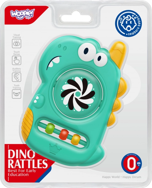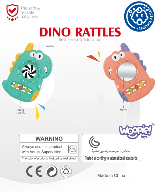 De geweldige WOOPIE dino-bijtring is speciaal ontworpen voor de behoeften van de allerkleinsten. Dankzij de ergonomische vorm ligt hij goed in de hand, de zachte siliconen elementen verzachten het doorkomen van tandjes en het ingebouwde spiegeltje en de beweeglijke kralen stimuleren op natuurlijke wijze zicht, gehoor en tast. Alles in één veilig en leuk pakket.