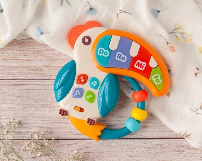 Woopie muzikaal kinderpianootje en bijtspeeltje pelikaan 3-in-1