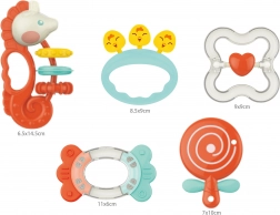 De Woopie set sensorische rammelaars en bijtringen is een geweldige hulp voor je kind tijdens het doorkomen van tandjes. Deze speelset verzacht niet alleen pijnlijk tandvlees, maar stimuleert ook actief de ontwikkeling van zicht, gehoor en tast. Perfect voor baby’s vanaf de eerste levensweken, met vijf verschillende speeltjes, elk met een unieke vorm en textuur.