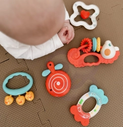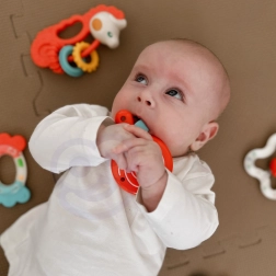 - Vijf verschillende bijtringen en rammelaars helpen bij het doorkomen van de tandjes