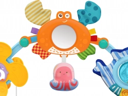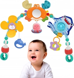 Speelboog met speeltjes van het merk Woopie is de ideale oplossing voor entertainment en ontwikkeling van je baby. Deze kleurrijke boog is uitgerust met verschillende speeltjes geïnspireerd door de onderwaterwereld, zoals een molentje met een pinguïn, krab spiegel, octopus, haai rammelaar en dolfijn hanger. De speeltjes stimuleren interactie met het kind en helpen hun zintuiglijke en motorische vaardigheden te ontwikkelen.