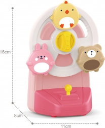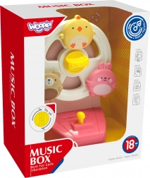 Het kuikentje, konijntje en beertje beginnen te draaien wanneer je het activeert en begeleiden het kind met een aangename speeldoosmelodie. Plezier dat zowel zicht als gehoor stimuleert.
