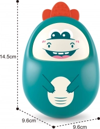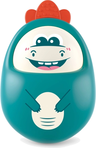 Een klein duwtje is genoeg en de dinosaurus begint te wiebelen – dankzij de afgeronde basis keert hij altijd terug en valt niet om. Perfect voor het trainen van coördinatie en plezier zonder frustratie.