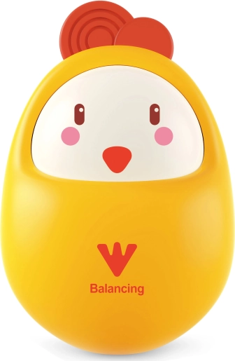 Zoek je speelgoed dat je baby vermaakt en tegelijk de ontwikkeling ondersteunt? Het wiebelende WOOPIE-kuikentje trekt de aandacht van kinderen al vanaf de eerste weken. Met een zacht duwtje wiebelt het schattig heen en weer en dankzij de slimme constructie valt het nooit om. Daarnaast speelt het melodieën af die het gehoor stimuleren en de aandacht trekken.