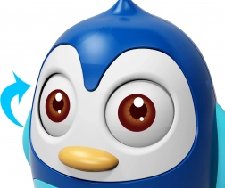 De pinguïn wiebelt bij aanraking zonder om te vallen, wat kleine kinderen boeit en hun nieuwsgierigheid opwekt.