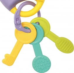 De getextureerde sleutels in verschillende vormen dienen als bijtring om het tandvlees te kalmeren en ondersteunen tegelijk de sensorische en motorische ontwikkeling. De kleurrijke uitvoering en veilige materialen prikkelen de nieuwsgierigheid en motiveren het kind om nieuwe impulsen te ontdekken.