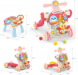 Deze speelgoedset is een ware schatkist vol verrassingen die het kind zelfstandig kan ontdekken. De combinatie van meerdere functies in één speelgoed – looptrainer, step, loopauto en educatieve tafel – zorgt ervoor dat het speelgoed lang interessant blijft.