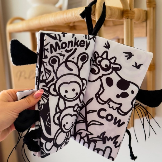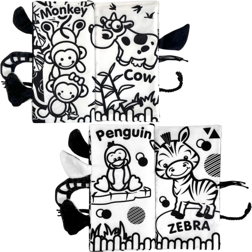 Zwart-wit afbeeldingen met dieren zijn ideaal voor pasgeborenen en helpen de gezichtsscherpte en concentratie te ontwikkelen.