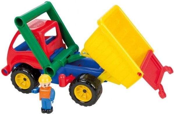 Kleurrijke LENA actieve kiepwagen van hoogwaardig kunststof die jonge bestuurders vanaf 2 jaar zal verblijden. Volledig mechanisch functioneel, met een kantelbare cabine met een actieve figuurtje en een vergrendeling tegen onbedoeld kippen van de bak – ideaal voor in de kinderkamer en in het zand.