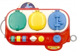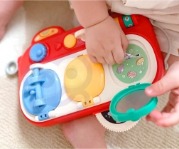 Dankzij de robuuste uitvoering en opvallende kleuren is de toy ideaal voor zintuiglijke prikkeling en de ontwikkeling van fijne motoriek, oog-handcoördinatie en cognitieve vaardigheden. Kinderen kunnen drukken, draaien, schuiven en openen, waarmee ze geduld, concentratie en probleemoplossend vermogen trainen.