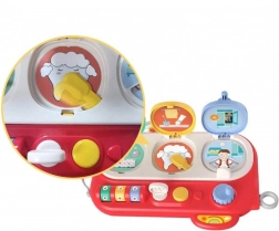 Knoppen, schakelaars en draaielementen ontwikkelen de fijne motoriek en oog-handcoördinatie, terwijl de contrasterende kleuren de aandacht vasthouden.