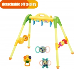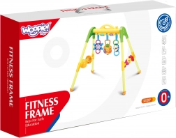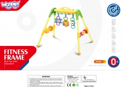 De rammelaarstandaard van het merk WOOPIE is ontworpen om de tactiele vaardigheden van kinderen vanaf de eerste levensmaand te ondersteunen. De rammelaars aan de zijkanten van de standaard draaien, en de kleurrijke hangers die naar beneden hangen wekken nieuwsgierigheid.
