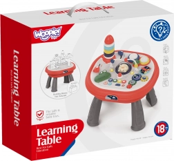 Interactieve educatieve tafel ruimte van het merk WOOPIE is bedoeld voor kinderen vanaf 18 maanden. Deze tafel bevordert de ontwikkeling van coördinatie, motoriek en cognitieve vaardigheden door verschillende interactieve elementen.