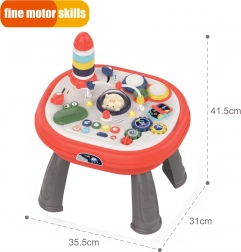 De Interactieve educatieve tafel ruimte WOOPIE biedt verschillende spellen en activiteiten ter ondersteuning van de ontwikkeling van het kind. Het is uitgerust met gekleurde knoppen, schakelaars en andere manipulerende elementen die het kind vermaken en ontwikkelen. Verder bevat het spelende knoppen, een boek, weefkralen, tandwielen en dieren. Dankzij de solide constructie en aandacht voor veiligheid is de tafel ideaal voor dagelijks spel.