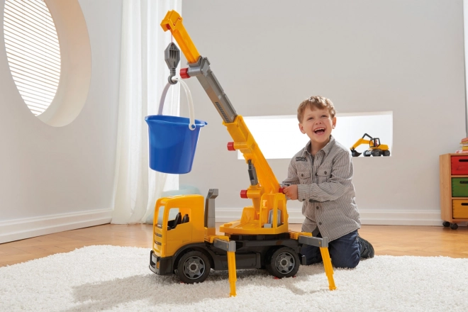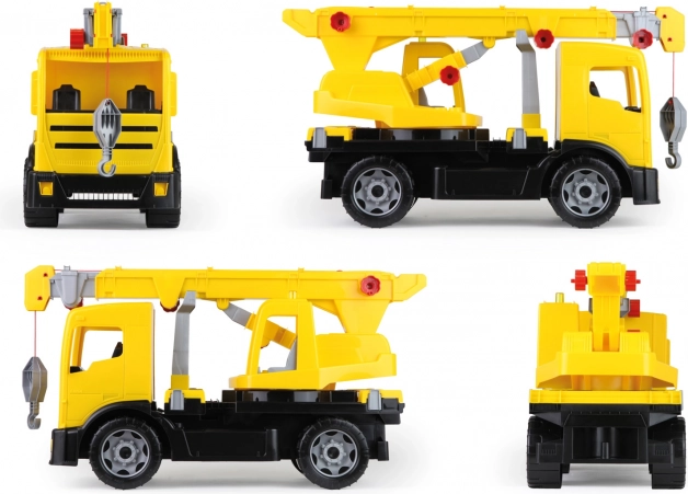 De robuuste kinderautokraan van het merk LENA maakt kleine bouwers blij met realistische functies en een duurzame uitvoering. Hij is volledig mechanisch werkend, heeft een draaiende giek van 270°, uitschuifbare stabilisatiepoten en een lier met haak voor het optillen van lading. Bij volledig uitschuiven bereikt de kraan een indrukwekkende lengte tot 115 cm en dankzij de hoogwaardige kunststof kan hij tegen een flinke dosis kinderfantasie.