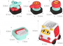 Elk blok traint een andere vaardigheid: uittrekken en verstoppen van het snoetje voor sensomotoriek, draaiknop voor coördinatie, drukdispenser voor vingerkracht en een schroefdop voor greep en rotatie. Zo verandert spelen in een educatieve activiteit die de brede ontwikkeling ondersteunt.