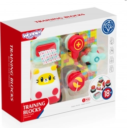 Interactief autootje Kat WOOPIE Baby is een leuke montessori bouwset voor de allerkleinsten die de fijne motoriek, verbeelding en zintuiglijke waarneming ontwikkelt. De set bevat een autootje en 4 eenvoudig aan te klikken blokken met functies: uittrekbaar snoetje, draaiknop, drukdispenser en schroefdop. Gemaakt van veilige en duurzame materialen voor kinderen vanaf 18 maanden.