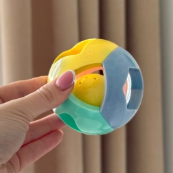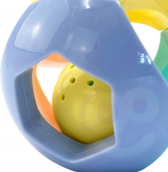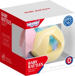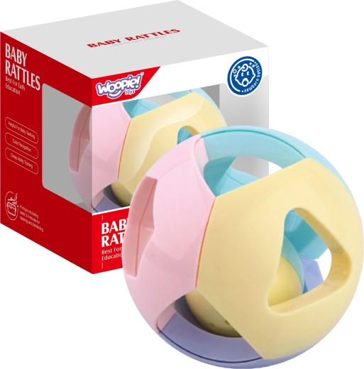 De pastelbal van WOOPIE betovert zowel baby’s als ouders. Dankzij de lichtgewicht constructie met openingen kan het kindje de bal gemakkelijk vastpakken, schudden en laten rollen. De binnenste elementen bewegen mee tijdens het draaien en zorgen voor een zacht rammelend geluid dat het gehoor stimuleert en uitnodigt tot verder ontdekken. De zachte rubberen grips zijn vriendelijk voor het tandvlees en dienen als bijtring tijdens het doorkomen van tandjes.