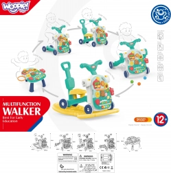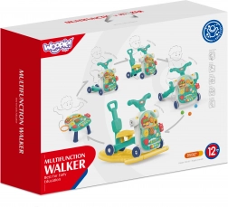 Ontdek de praktische en speelse 5-in-1 loopwagen die zich eenvoudig aanpast aan de actuele behoeften van je kind: van ondersteuning bij de eerste stapjes en leuke activiteiten tot het ombouwen tot een loopauto of schommel. De interactieve elementen stimuleren de fijne en grove motoriek, coördinatie, zicht, gehoor en creativiteit.