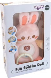 Het interactieve konijntje in roze helpt je baby te kalmeren en makkelijker in slaap te vallen. De zachte buitenkant en de pluizige vulling zorgen voor heerlijk knuffelen, terwijl de melodieën en het gedempte lichtje een fijne sfeer creëren om uit te rusten.